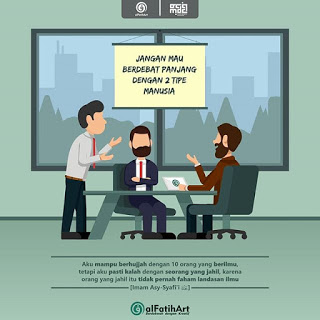 Pesan Imam Asy-syafi’i rahimahullah, “Aku MAMPU BERHUJAH dengan 10 orang yang BERILMU, tetapi aku PASTI KALAH dengan SEORANG YANG JAHIL, karena orang yang jahil itu TIDAK PERNAH FAHAM LANDASAN ILMU.”